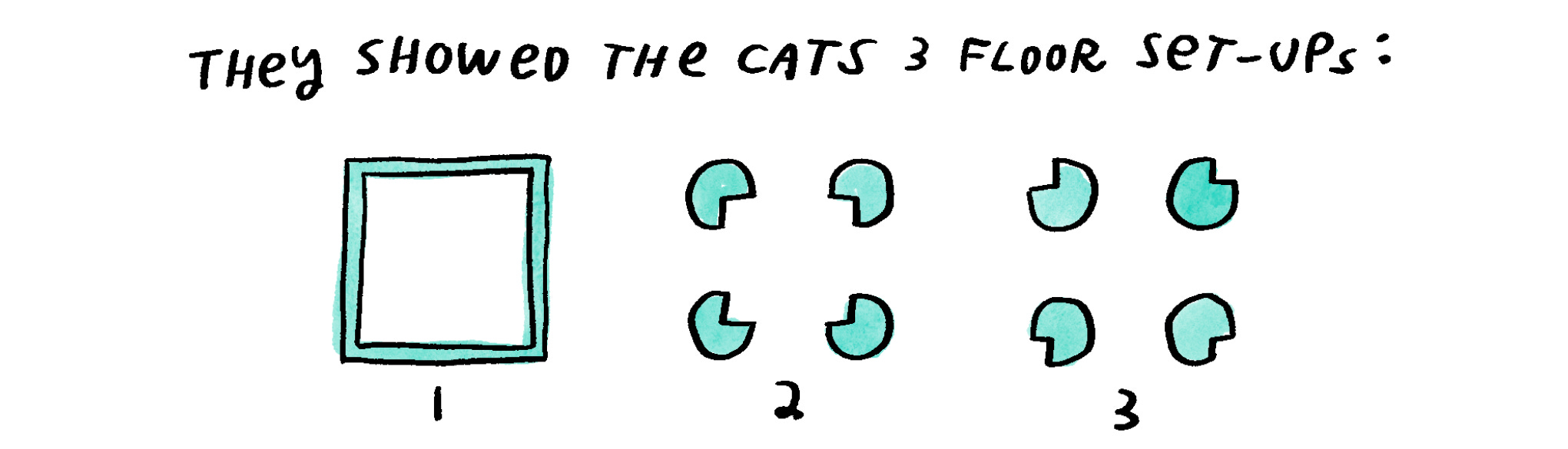 The cats equally sat in set-ups 1 & 2, and consistently avoided set-up 3!